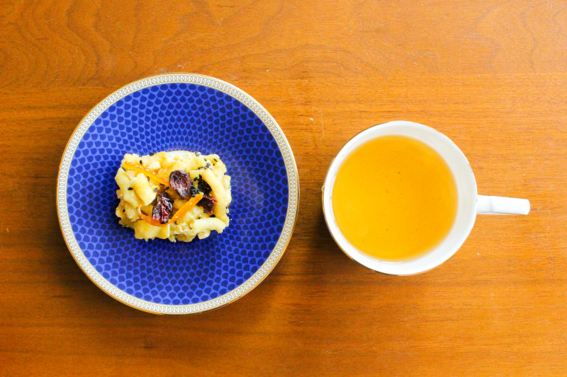 Sprinkle dried cranberries (or any other fruit you like!), candied orange peels (if you want), and remaining sesame seeds.