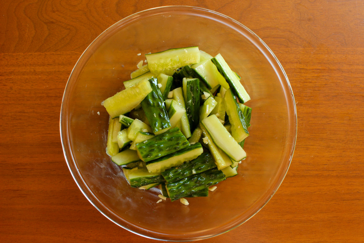 Wash cucumber (peel if you want - sometimes the skin can be bitter).