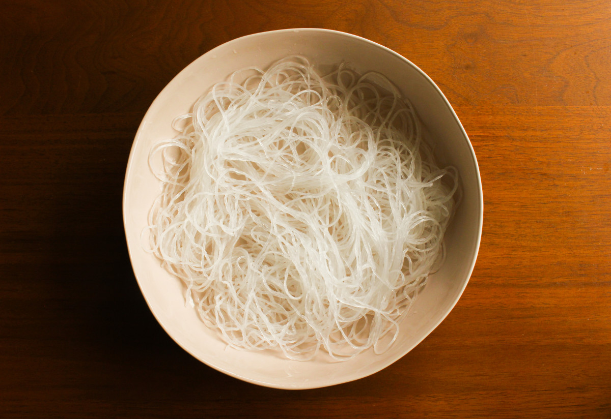 Soak vermicelli in a bowl with 1 cup hot water and 1 cup cold water. Let sit for 30 minutes.