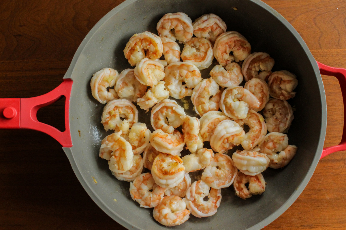 If the shrimp is not peeled and deveined, this is the first thing to do. Start by peeling the shrimp.