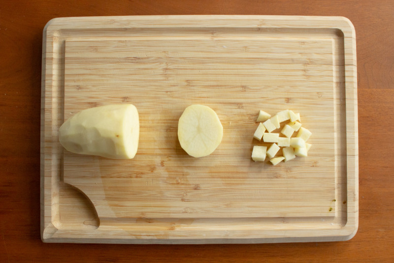 Once the water boils, lower the heat to medium. Cover the pan and let simmer for 15 minutes or until the potatoes are soft.