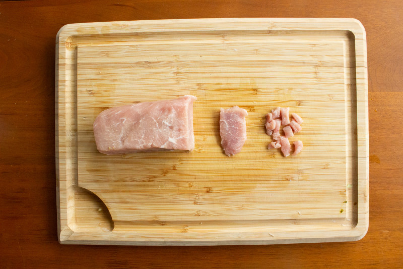 Add the pork tenderloin, Chinese cooking wine, black vinegar, 1 tbsp light soy sauce, and dark soy sauce to the pan.