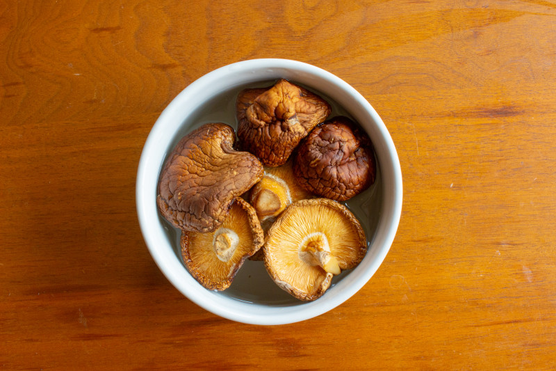 Soak the Shiitake mushrooms in water for 30 minutes.