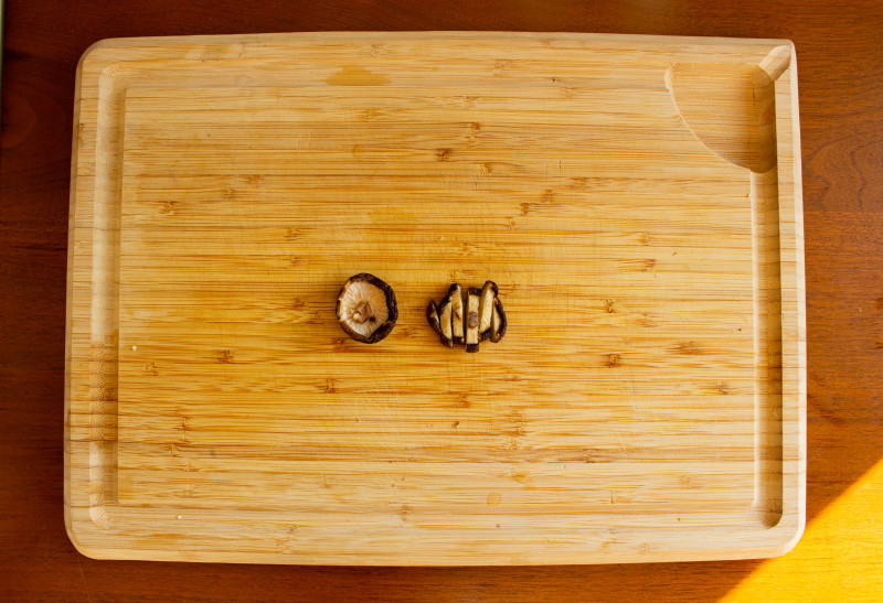 Once the Shiitake mushrooms are soft, cut into thin slices.
