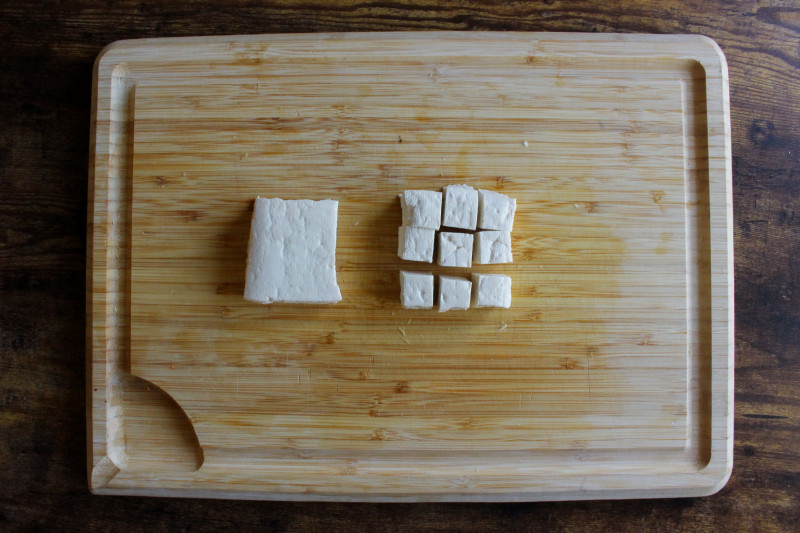 Wash and slice the tofu into 1-inch square pieces.