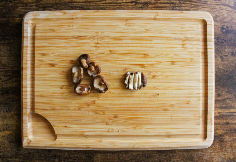 Strain the Shiitake mushrooms and cut into thin strips.