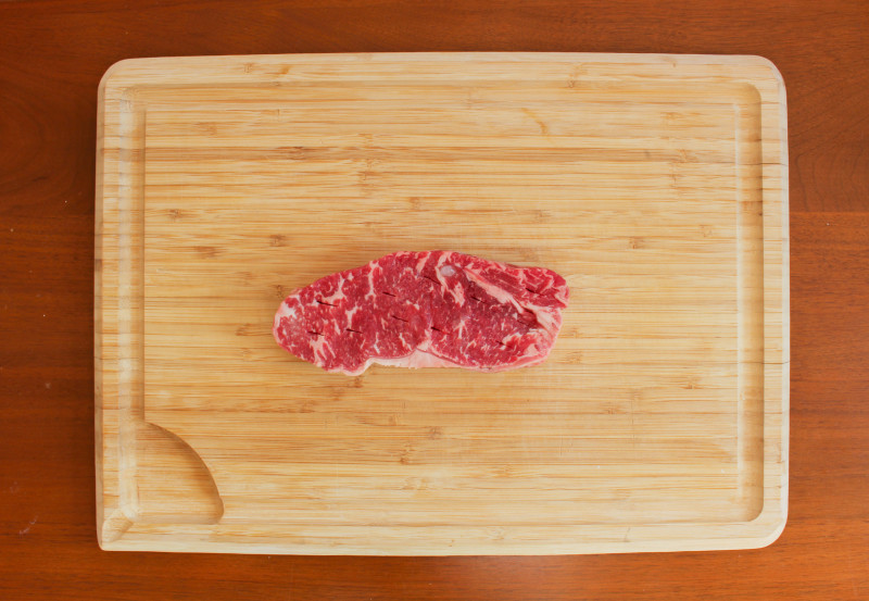 Lay the steak on top of the salt and pepper.