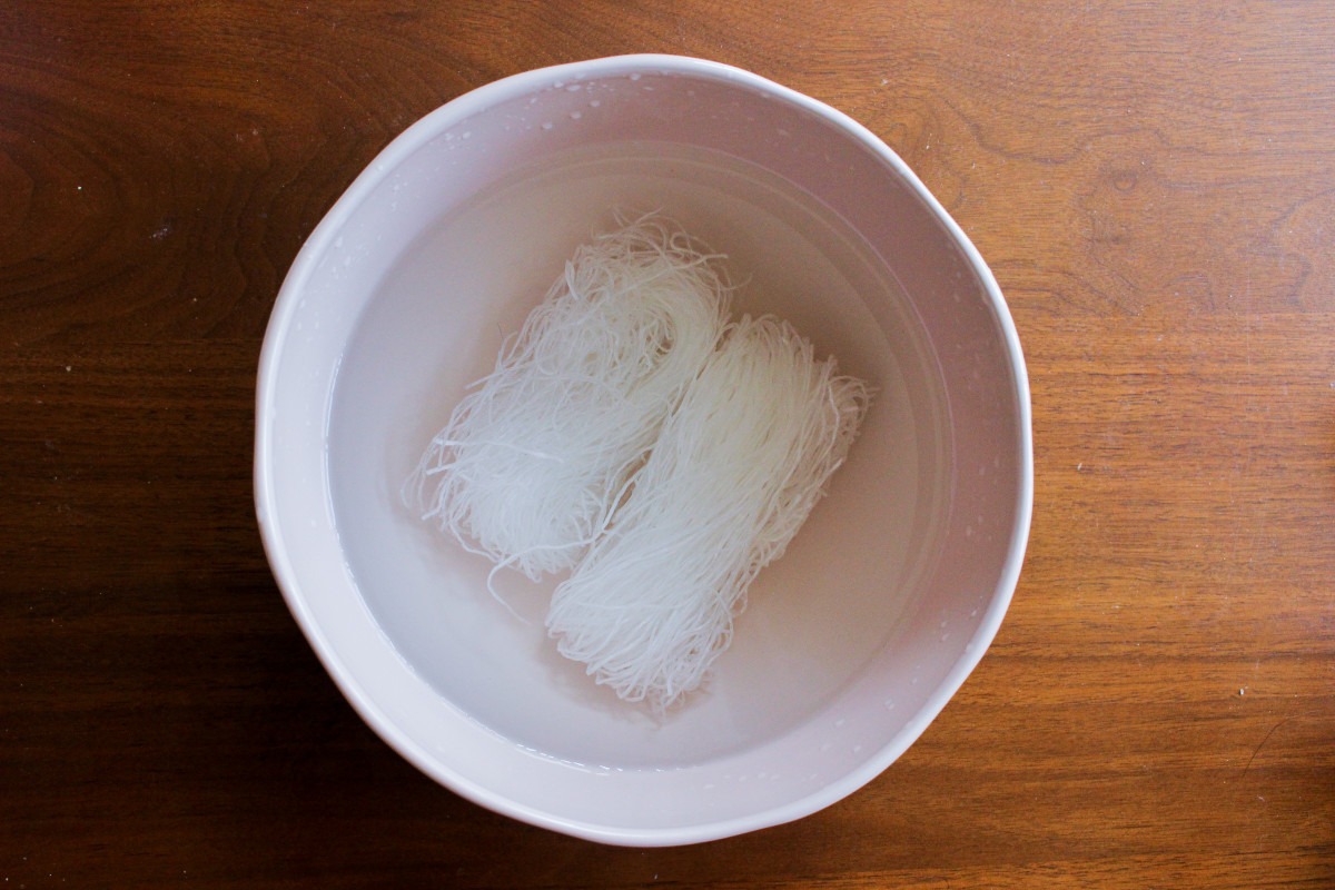 Cut the vermicelli in half crosswise and continue to soak while you prep the other ingredients.