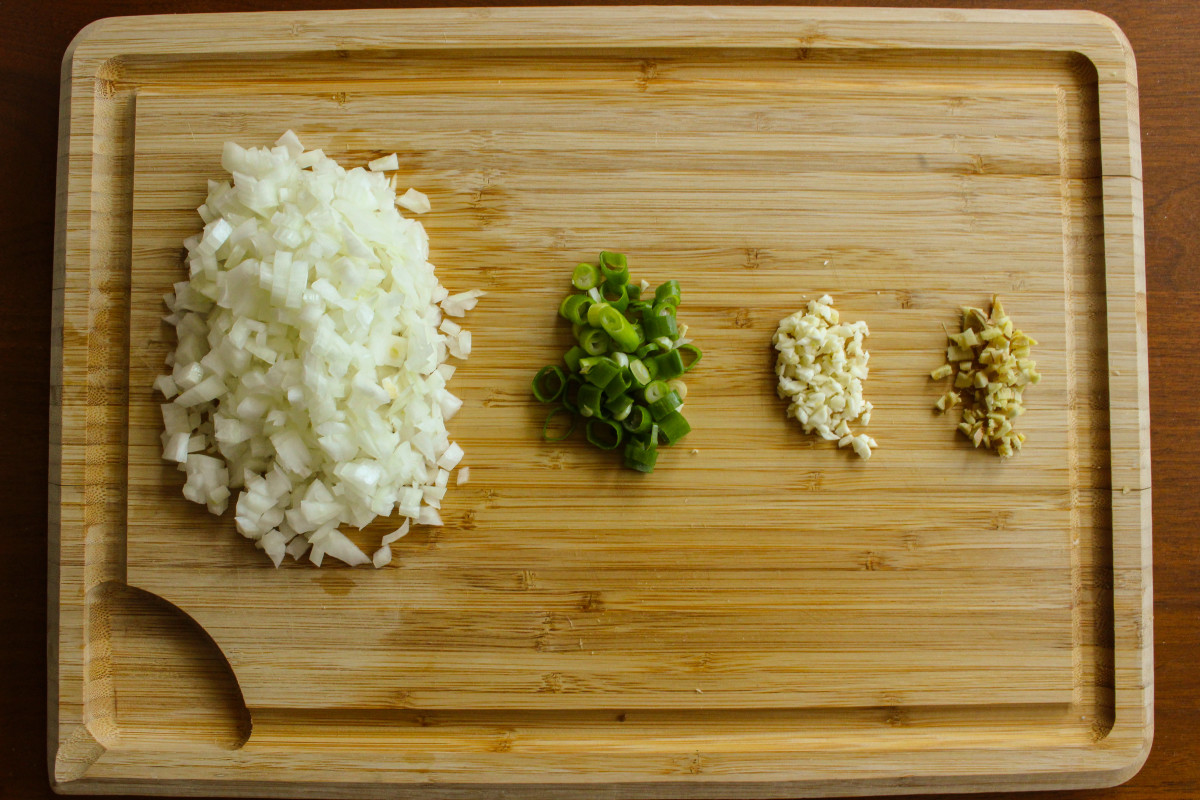 Mince ginger and garlic.