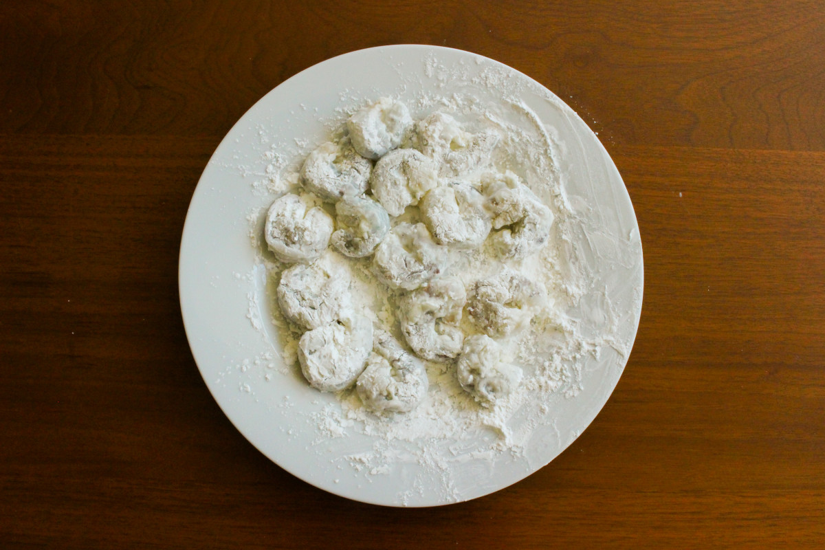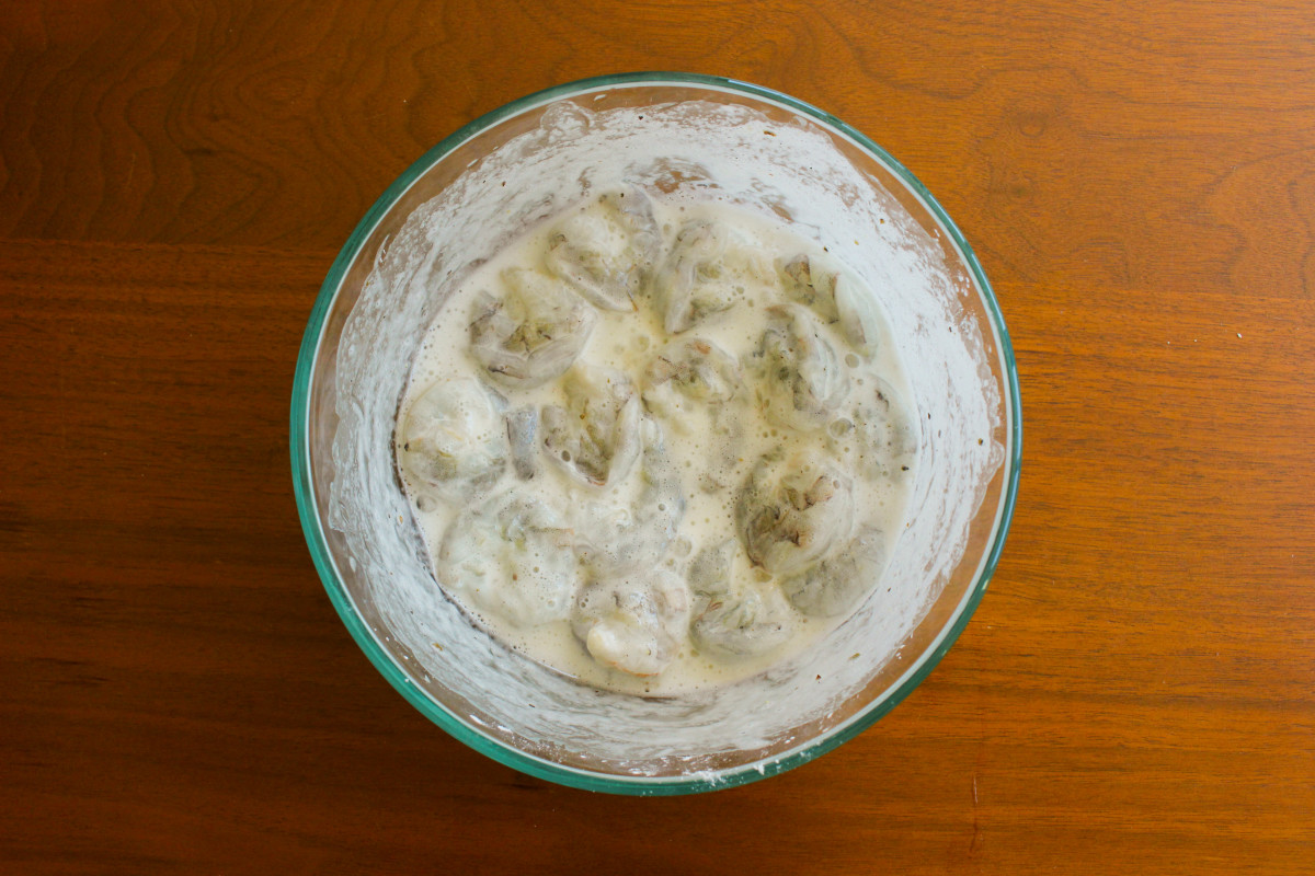Add 1 egg white, 1/2 tsp ground pepper, 1/4 tsp salt, and 1 tbsp cornstarch.